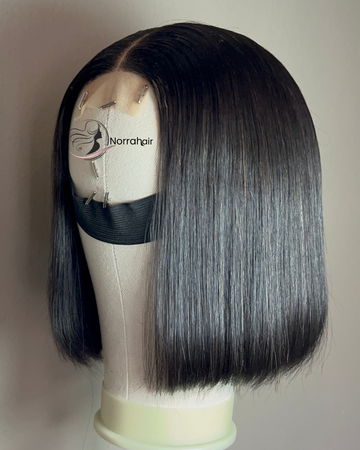 10” Black Bone Straight Wig made from 100% Virgin Vietnamese Hair with a 2x6 closure for a natural look and easy wear.