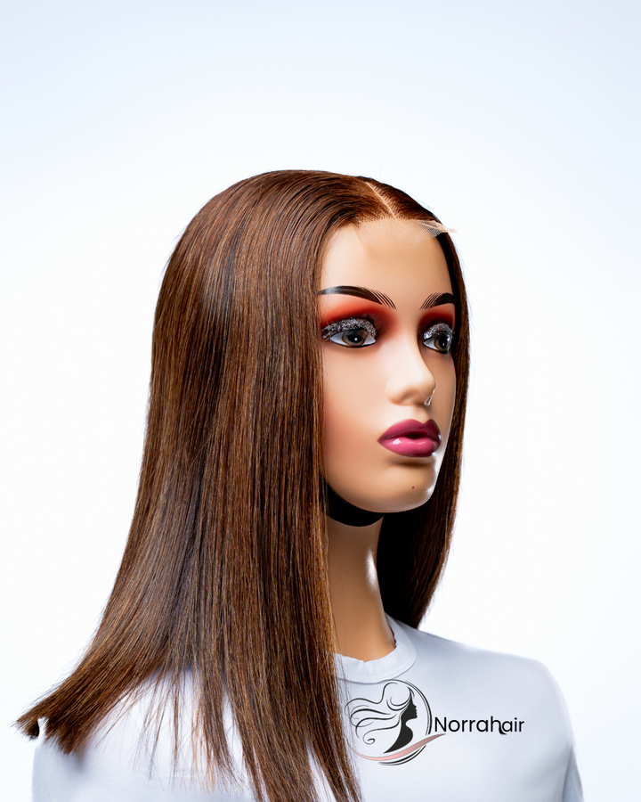 12” Piano Bone Straight Wig made from 100% Virgin Vietnamese Hair with a 2x6 closure for a natural look and easy wear.